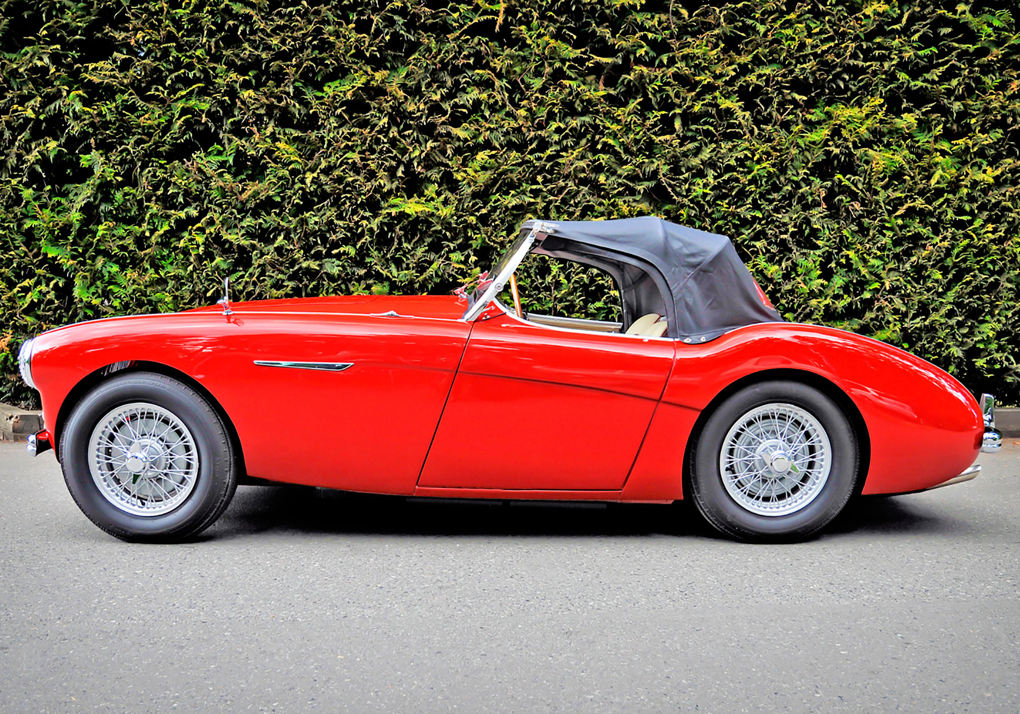 This 1955 Austin-Healey 100, series BN1, 226324, has been owned by Nigel and Jeanne Lamb of Kaleden, British Columbia, since 1964. It was used as a summer driver until 1982 when the car was stripped completely. Hidden damage was found and the car remained underwraps until 2004 when the restoration it deserved could be afforded. The restoration was completed in 2010 and debuted at the Vancouver (British Columbia) All British Field Meet where it was awarded first in class. Finished in Carmine Red with abone-colored interior, the carhas trophied each time out and attained a high Silver certification in concours judging at the 2011 Rendezvous in Squamish, British Columbia.